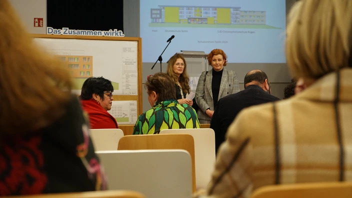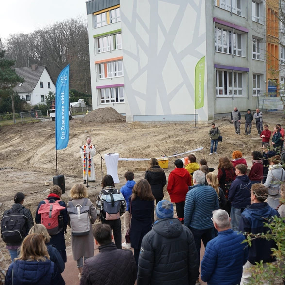 Nach der feierlichen Zeremonie in der Aula begaben sich alle Beteiligten zur Baustelle, wo Pastor Olav Metz von der Evangelischen Kirchengemeinde Mönchgut-Sellin eine besinnliche Ansprache hielt. Anschließend wurde das Band feierlich durchschnitten und eine Zeitkapsel mit Erinnerungsstücken vergraben – ein Symbol für unsere gemeinsamen Visionen und die Zukunft der Schule.